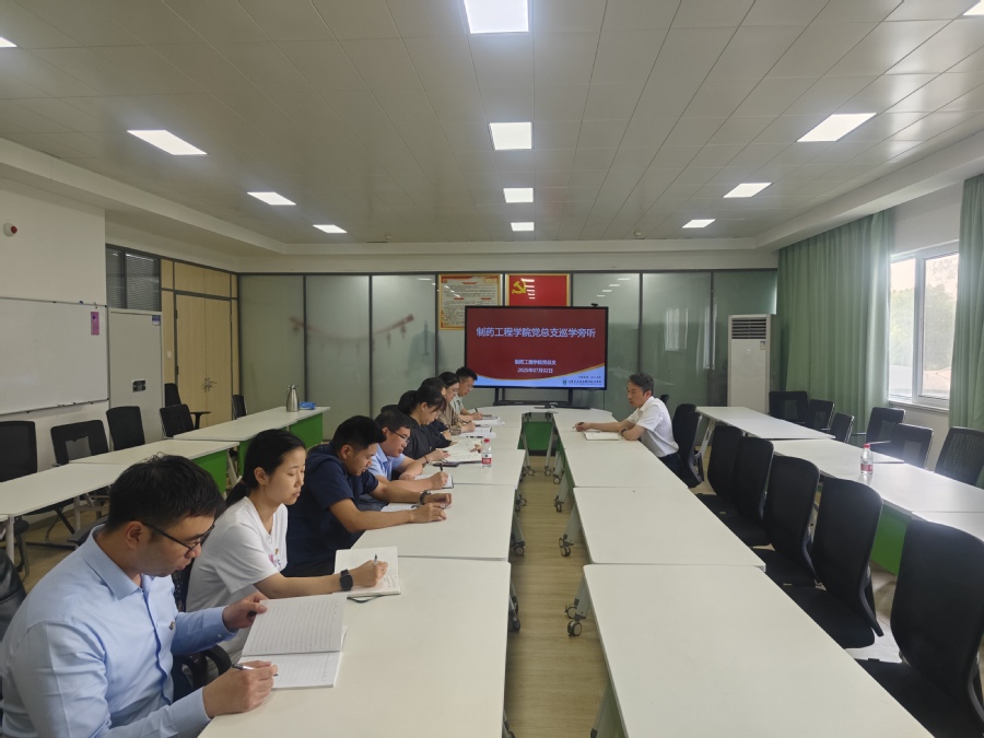 7月2日下午,校党委委员、副校长贾韶千赴制药工程学院党总支讲授专题党课并巡学旁听党总支理论学习中心组学习会,会议由党总支书记朱劲松主持。