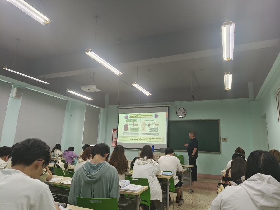7月4日下午,中外师生交流会在第五会议室举行。国际教育学院与药学院师生代表参加了交流会。会中,Neville Hugo McClenaghan老师与学生代表围绕专业学习、职业发展、跨文化交流等主题进行了深入互动,气氛轻松热烈。