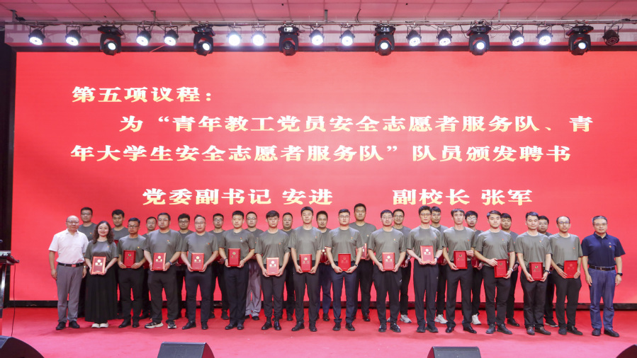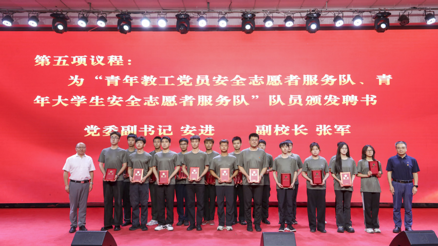 安进副书记、张军副校长为两支服务队的队员颁发聘书,队员们双手接过聘书,神情庄重——这一刻,责任的重量沉甸甸地落在掌心,他们将以实际行动,书写青春与安全的故事,续写光荣篇章。