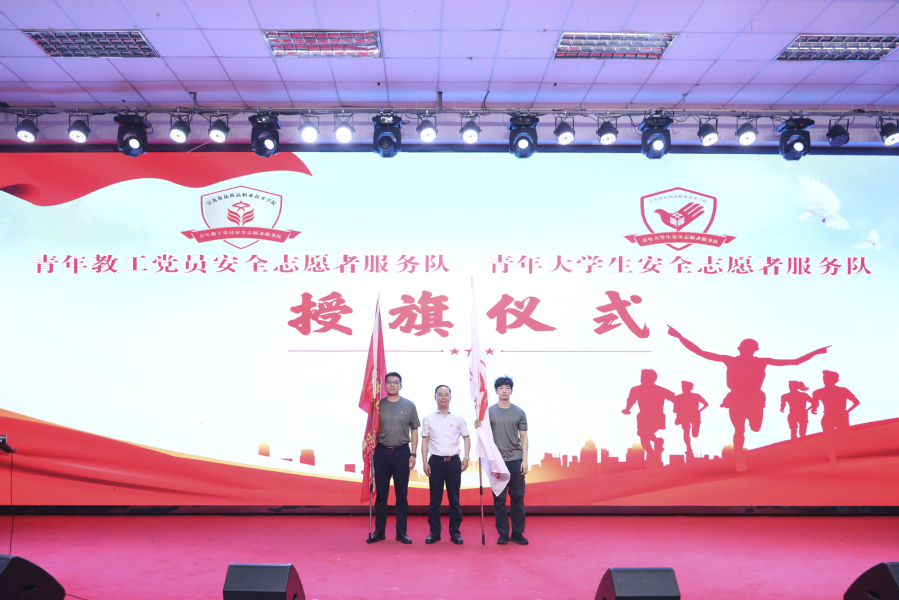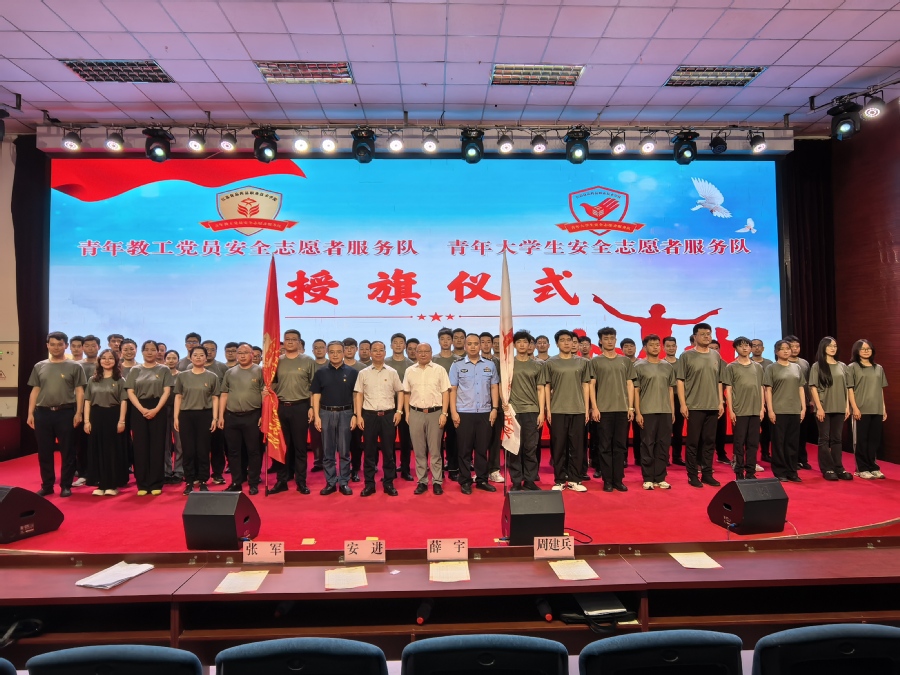 为进一步加强校园安全管理,凝聚青年力量共筑平安校园。7月3日,学校在教学楼C115举行第一届青年教工党员安全志愿者服务队、青年大学生安全志愿者服务队授旗仪式。学校党委书记薛宇、党委副书记安进、副校长张军、枚乘路派出所副所长周建兵出席仪式,仪式由学校党委副书记安进主持。
