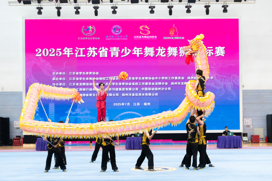 7月8日至11日,2025年江苏省青少年舞龙舞狮锦标赛在扬州职业技术大学举行,来自江苏13个设区市的40支代表队,近800名运动员、教练员参加本次比赛。
