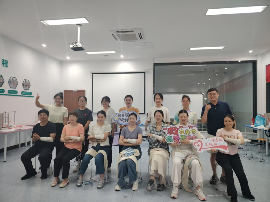 本次培训共进行了三天,培训内容涉及救护概论、心肺复苏、创伤救护、意外伤害、突发事件处置等项目内容,授课老师以理论教学、实际操作和情景演练等方式对大家进行了培训。