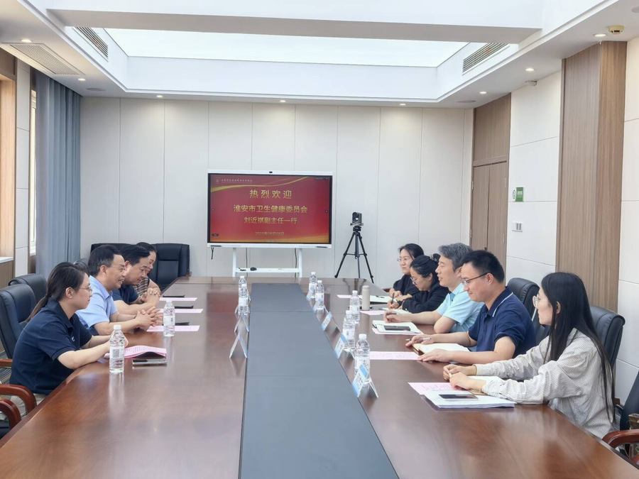 8月5日,淮安市卫生健康委员会刘近祺副主任一行赴乐竞开展山阳医派传承发展专项调研,副校长贾韶千热情接待了来宾。淮安市中医院周兴武副院长陪同调研。