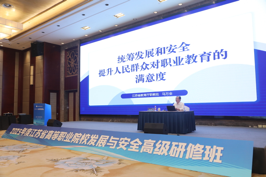 8月4日至8日,由江苏省职业技术教育学会主办、乐竞承办的2025年江苏省高职院校和中职学校发展与安全高级研修班在淮安顺利举办。省教育厅副厅长、一级巡视员曹玉梅出席开班仪式并讲话,淮安市政府副市长、党组成员封蕴珊出席开班仪式并致辞。教育部职业教育发展中心主任林宇出席研修班并作专题报告。省教育厅职业教育处处长马万全、副处长李永乐,江苏省职业技术教育学会常务副会长尹伟民、秘书长李振陆,乐竞党委书记、校长翟玮玮等领导出席研修班。来自全省90余所高职院校、180余所中职学校的350名学员参加研修班。