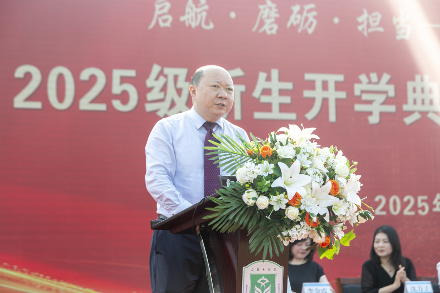 校党委书记、校长翟玮玮发表讲话。她回顾学校65年办学历史与发展成就,并以三点殷切期望为新生领航定向,一是做“守初心、有底线”的追梦者。技术越发展,操守越重要,希望同学们用精湛技能为国家发展添砖加瓦,以高尚操守守护职业尊严,在每一次实训中都坚守质量底线,让“工匠精神”扎根于心。二是做“本领强、能成事”的实干者。她鼓励新生主动将专业学习与时代需求结合,在团队协作中破解技术难题,在产教融合中练就硬核本领,让青春在服务国家战略中绽放光彩。三是做“懂生活、会自洽”的从容者。她建议同学们从规律作息、坚持运动等小事做起,筑牢健康基石;更要学会接纳挫折、调整心态,包容悦纳自我,在成长中保持内心的平和与坚定。