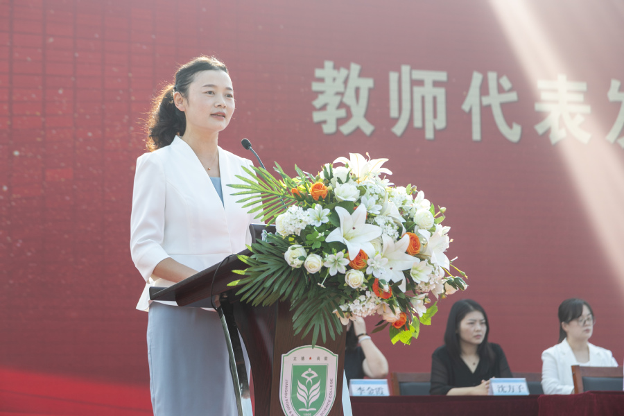 数字经济学院辅导员胡媛媛代表全体辅导员发言,她寄语同学们,要学会独立、拥抱成长,学会与人相处,学会管理时间,学会对自己负责;要珍惜时光、勤学笃行,锤炼过硬本领,提升综合素养;要保持乐观,以阳光心态面对挑战,在青春赛道上奋力奔跑。