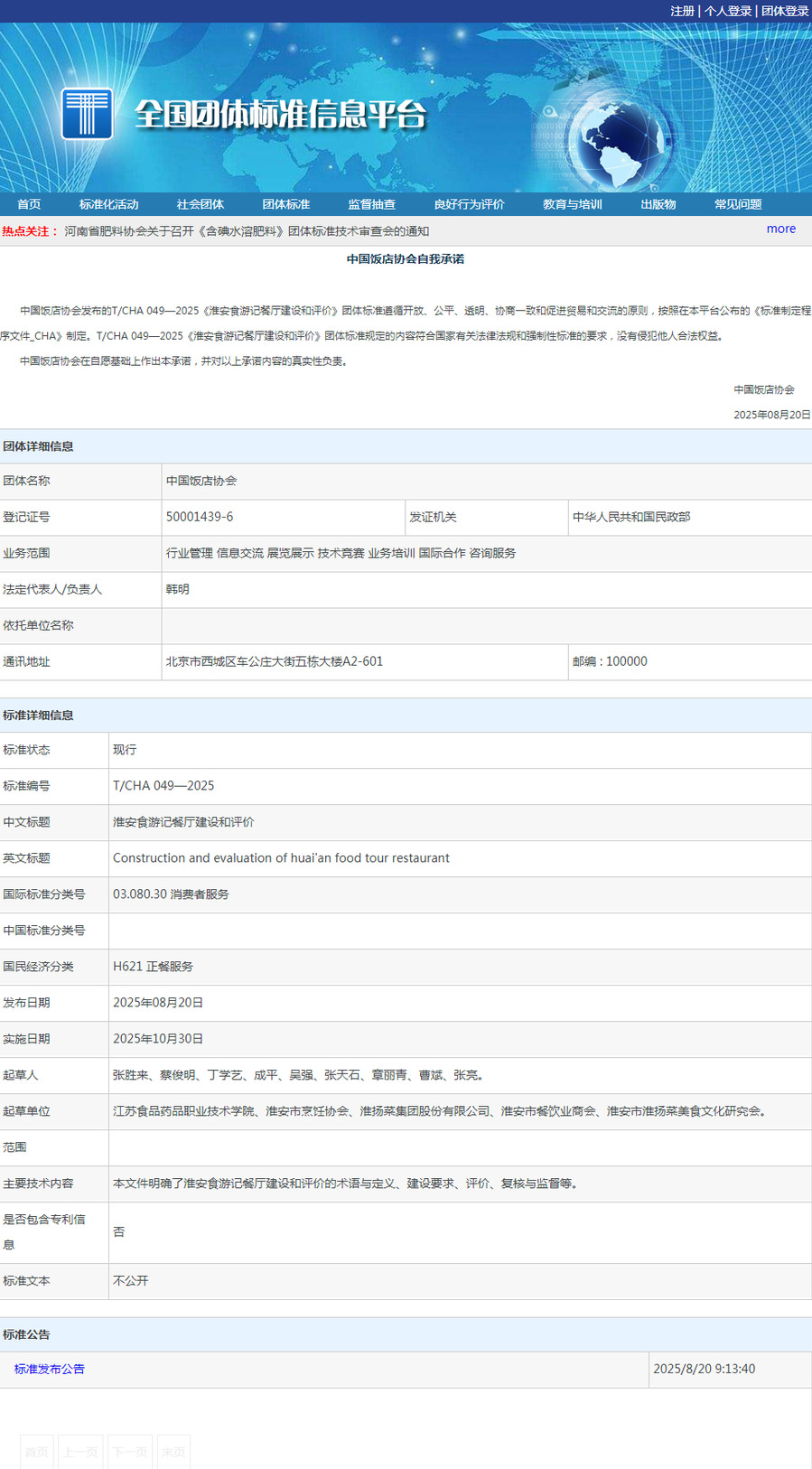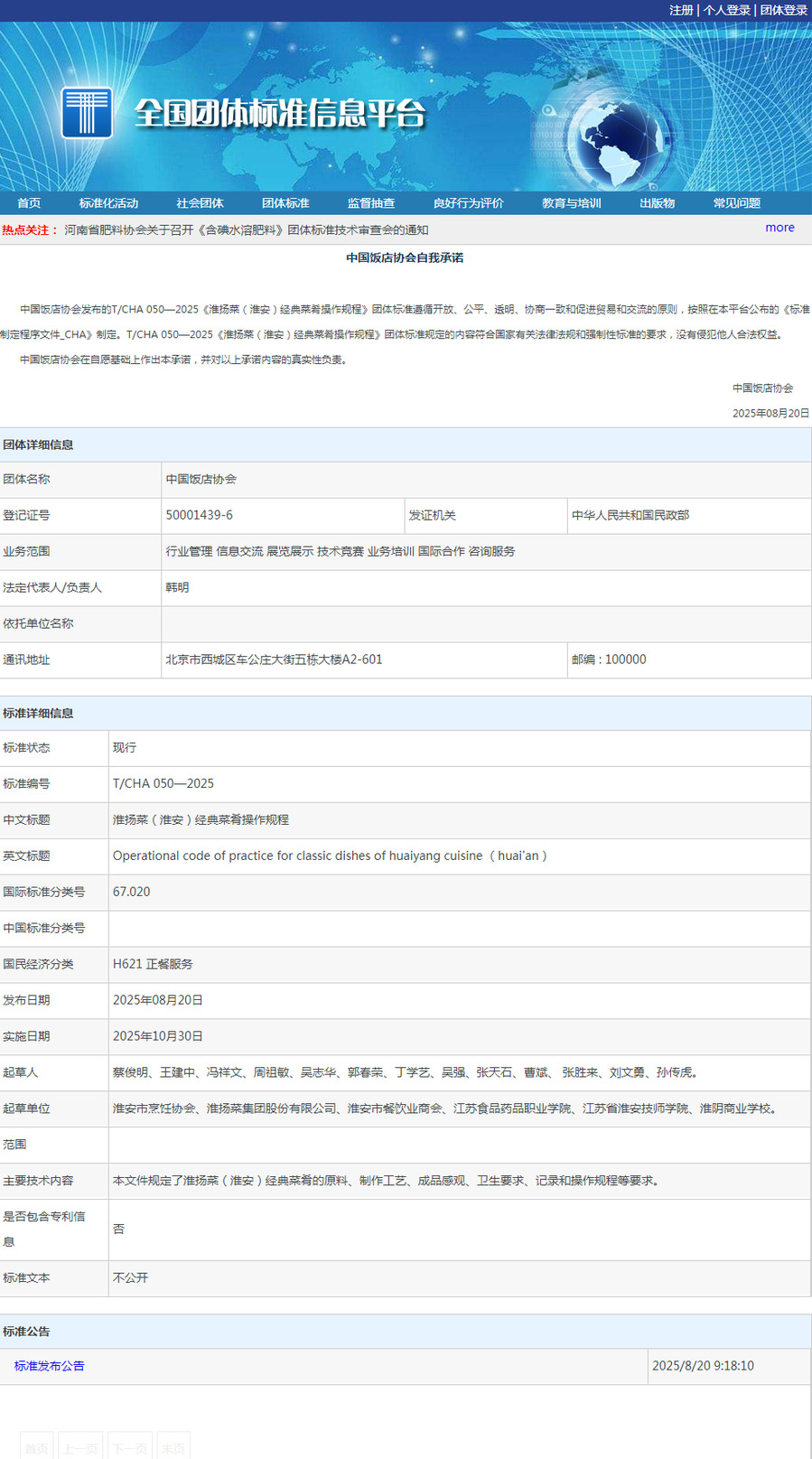 近日,中国饭店协会正式发布两项重要团体标准——《淮安食游记餐厅建设和评价》(T/CHA 049-2025)与《淮扬菜(淮安)经典菜肴操作规程》(T/JPCT 050-2025)。这两项标准由乐竞酒店学院张胜来教授主持及参与起草,标志着乐竞在餐饮标准化、淮扬菜技艺传承与文旅融合研究领域取得重大突破。