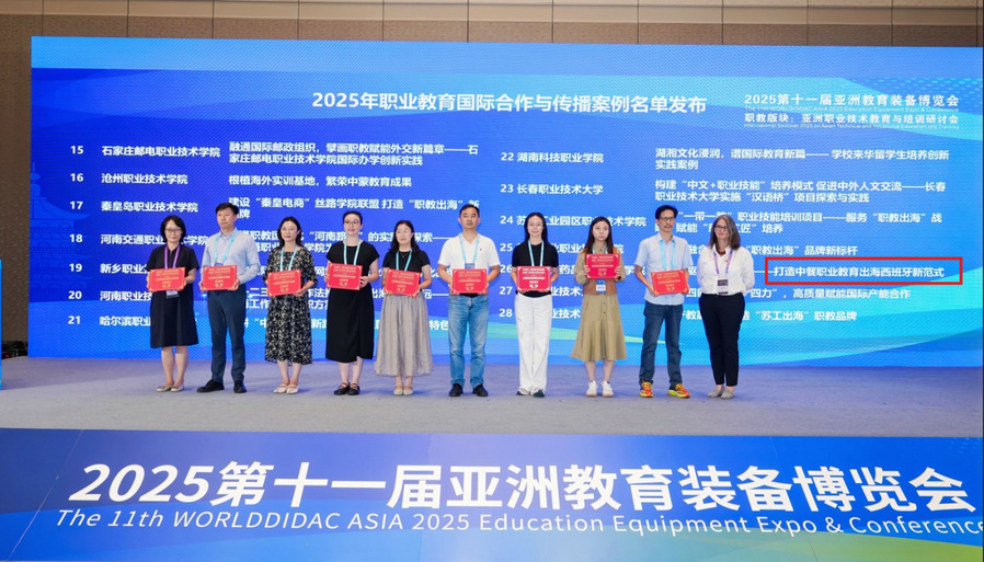 9月17日至19日,WORLDDIDAC ASIA 2025第十一届亚洲教育装备博览会在杭州大会展中心举行。乐竞申报的案例“四擎并驱,多元共进——打造中餐职业教育出海西班牙新范式”,获2025年职业教育国际合作与传播优秀案例,并入选“走向世界中国职业教育方案”典型案例集。