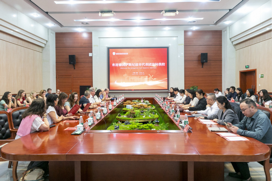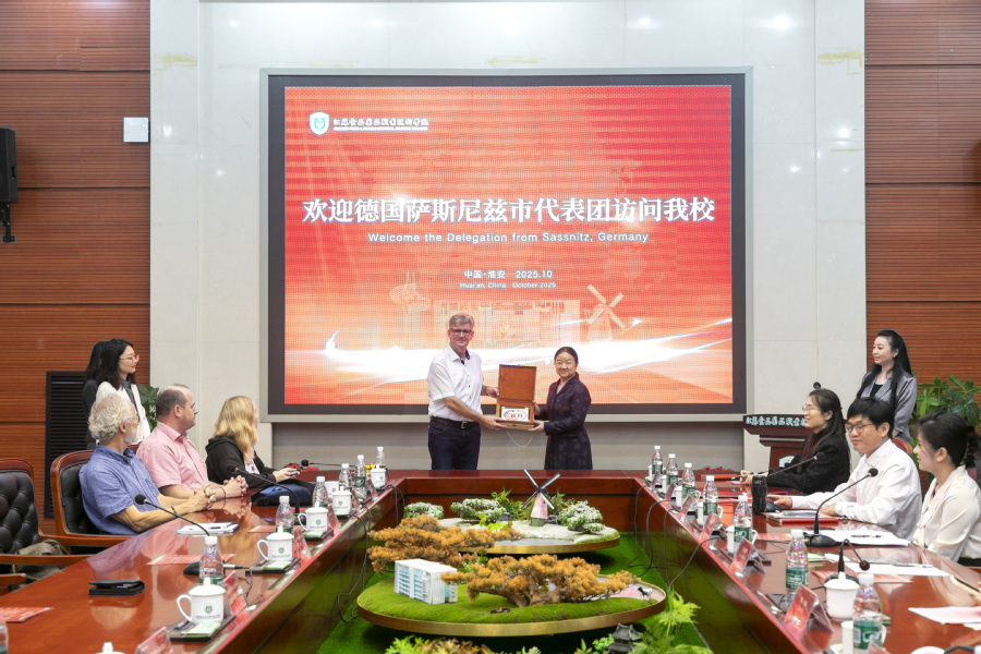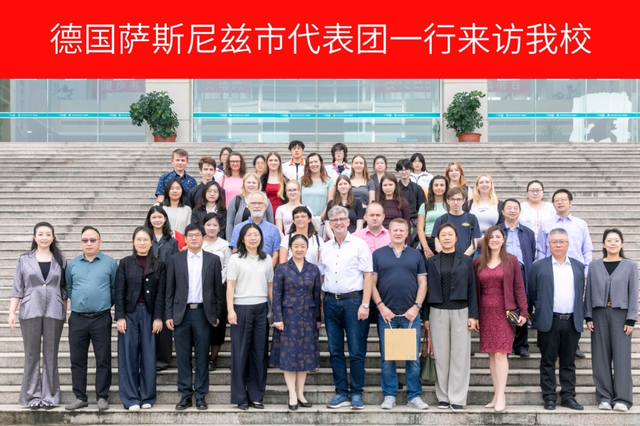 10月14日至15日,德国萨斯尼兹市市长里昂·斯文·克劳舍、议会主席诺伯特·玛利亚·本尼迪克特率领德国青年代表团一行21人来乐竞访问交流。乐竞党委书记、校长翟玮玮、副校长焦宇知接待了德国来宾,畅叙友谊、共话合作。