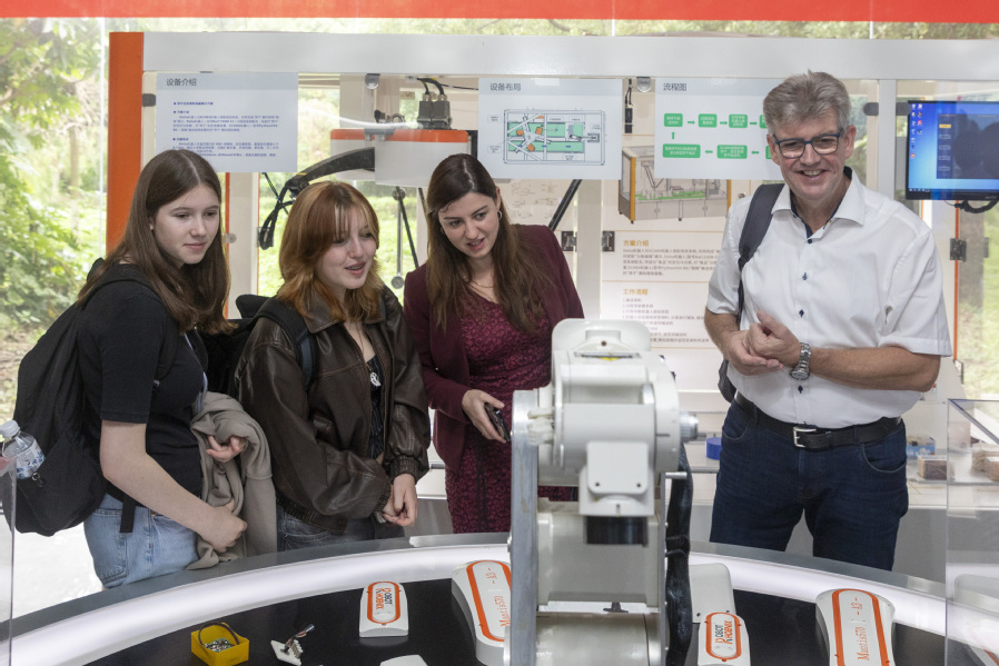 10月15日,国际教育学院老师为德国萨斯尼兹市代表团的青年学生们讲授了一堂别有生趣的汉语课,教他们学唱《幸福拍手歌》。德国的青年们积极参与,展现出对汉语学习的浓厚兴趣。