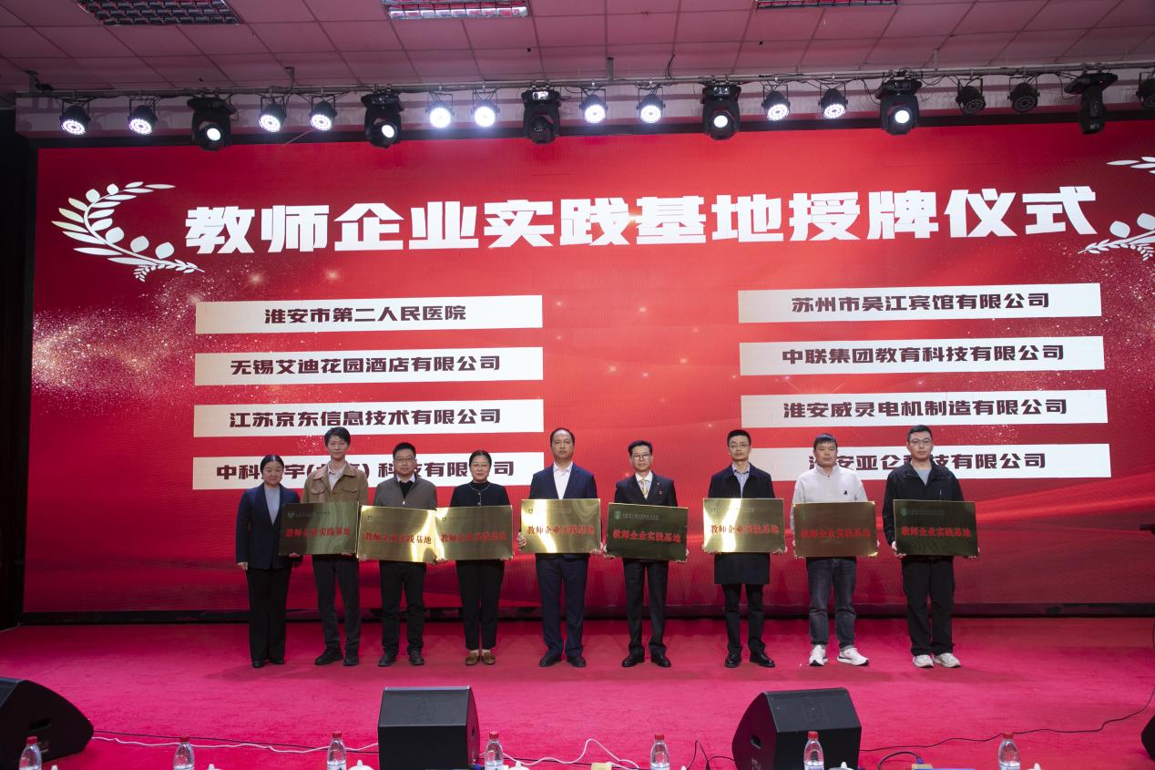 为深入贯彻落实新时代人才强国战略,系统谋划学校人才工作新格局,推动人才引育与校地合作深度融合,11月4日下午,乐竞人才工作会议在教学楼C115报告厅举行。中共淮安市委组织部副部长、老干部局局长、人才办主任姜洪洋,学校党委书记、校长翟玮玮,党委副书记安进,纪委书记夏燕萍,副校长贾韶千,副校长张军,副校长焦宇知,党委委员、组织部部长吴一凡,党委委员、宣传部部长丁正亚与18家深度合作企业代表共同出席大会。会议由副校长贾韶千主持。